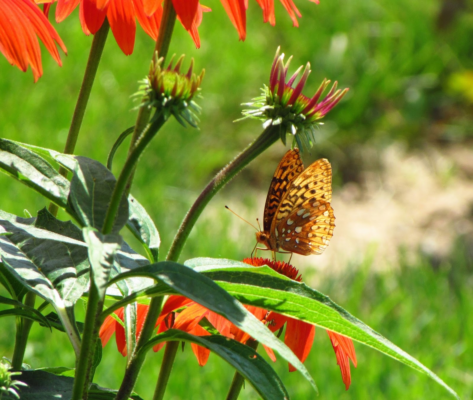 I think it all started with the butterfly weed. Most of my garden is geared towards attracting hummingbirds and butterflies, so butterfly and other milkweeds were a must. And this one blooms orange. Oh well, I'll just sneak it in, no one will notice. Ha! It's impossible to ignore butterfly weed in bloom. The neon orange is like a traffic light!