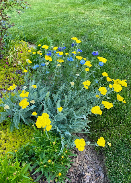 When I returned home, it was time to plant! Even though I had already gathered countless annuals, I had also visited an enormous nursery up near my alma mater, and brought home even more plants. But each one had a planned home, so I began to fill up the planters. My color theme this year is yellow, and I'm really pleased with my choice. It's so bright and sunny everywhere I look.