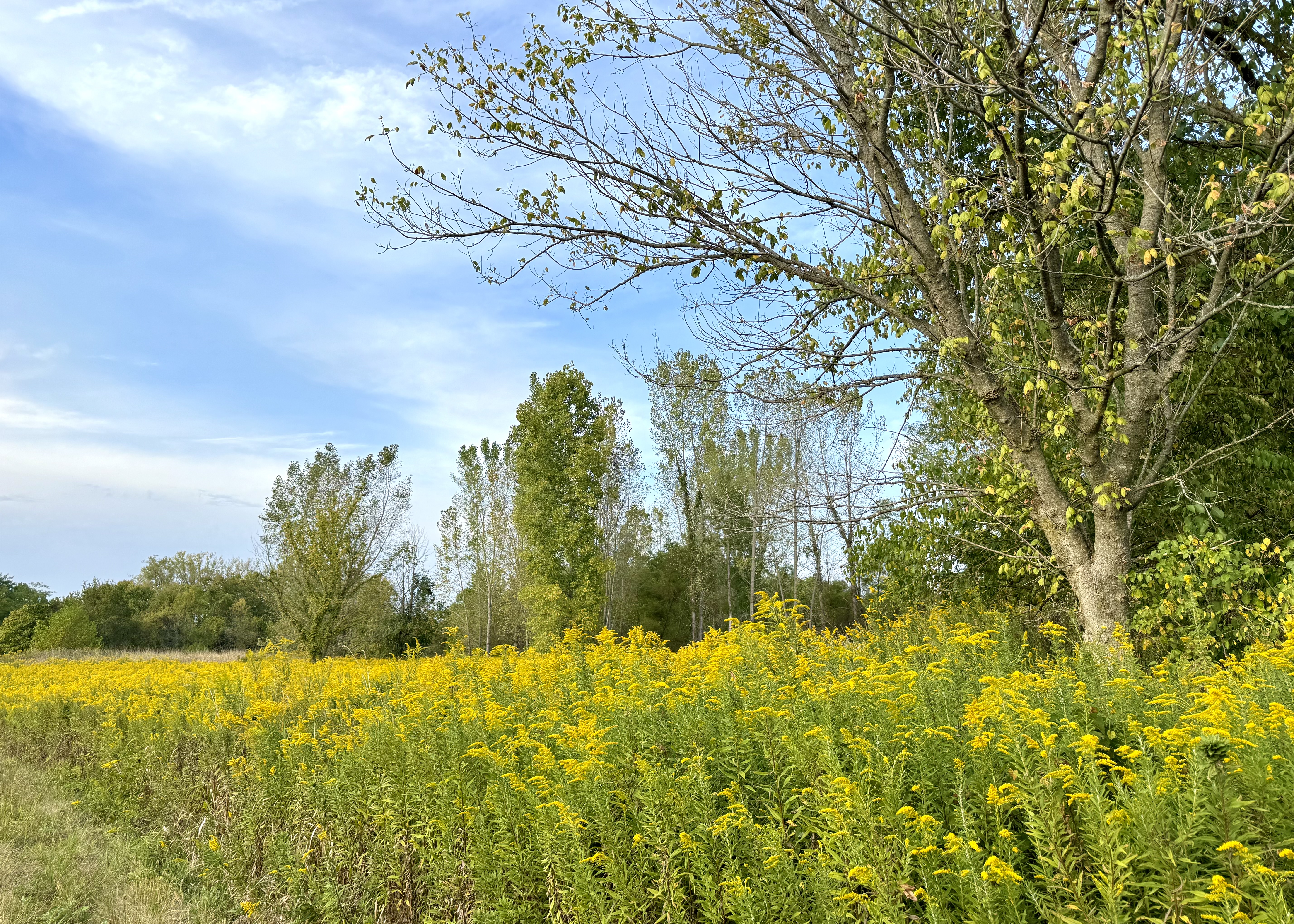 Even though it's a bit early for fall colors, I did begin my usual haunting of the local metro parks, in search of scenic views. You see, to me the fall colors start with goldenrod. The local parks have massive fields of it, and in September, I begin to make my rounds of them. As much as I love those golden fields, I was even more tickled to find the first hints of fall color. The drought has stressed the trees so much that some of them have already given up trying to hang on to their chlorophyll. Unfortunately, drought stricken trees often skip their usual colors, and go straight to brown. But I'm still hoping for the best.